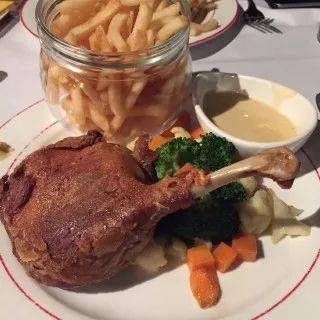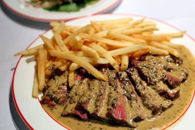配上秘制的酱汁和炸得金黄酥脆的薯条