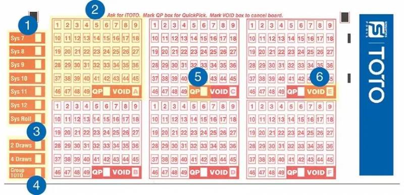 每张投注单上最多可选择6组号码。选择普通下注,划上六个号码。选择卷式下注,划上五个号码 。选择系统下注,依照您选择的投注种类,划上分别七至 12 个号码。