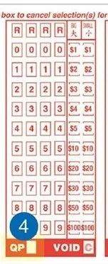 如果选择普通下注或卷式下注,无须划上任何投注种类。普通下注是指选择一组号码及一个特定顺序,最低下注金额为$1。