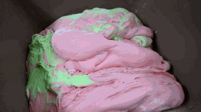 粉红色和绿色的面团揉搓、揉搓,好治愈!