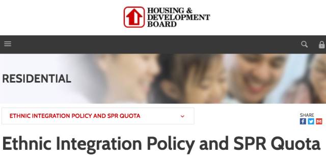 住房:民族融合政策(EIP)要确保组屋的各族群人口比例与全国水平相当。