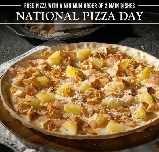 购买两份主食并出示此图,即可获得一个免费披萨~