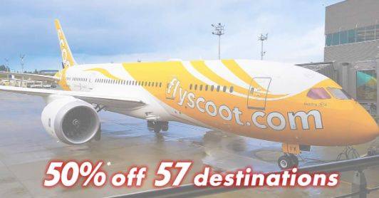 超过57个目的地,酷航机票半价!促销码:MARCHON