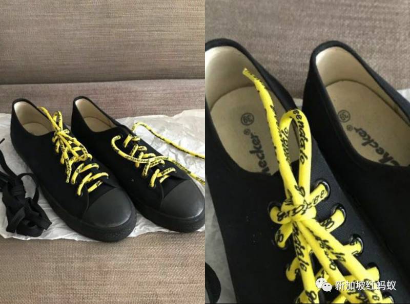 绿苑中学的鞋带是亮黄色的,还以黑色加上校名,让鞋子整体辨识度高,让任何人从远处看到,都能辨识鞋主是该中学的学生。虽然得另外买一双鞋带系上,但红蚂蚁觉得比起单调的黑鞋加黑鞋带,还是不错看啦。