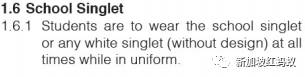 学生需在校服底下穿上学校的无袖背心,或任何一件没有花纹设计的白色背心。