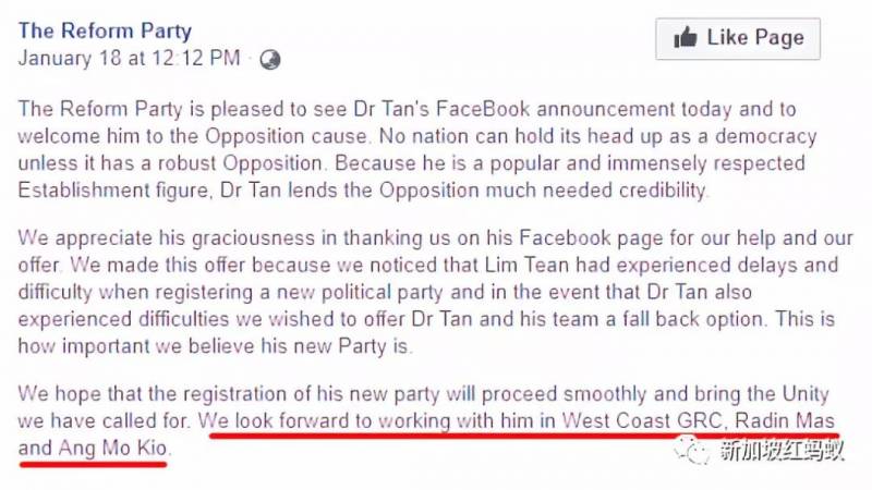 特别是东海岸集选区过去三届都由工人党竞逐,这一次如果木叔看中东海岸,工人党会相让吗?西海岸集选区上两届大选则是由革新党挑战行动党。革新党可能比较好商量,秘书长肯尼斯已经在面簿上公开向陈清木释放友好合作之意,并特别点名“期待与陈清木在西海岸、拉丁马士和宏茂桥合作”。