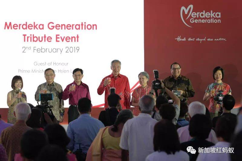 李显龙总理携部长们向“立国一代”致意。(海峡时报)