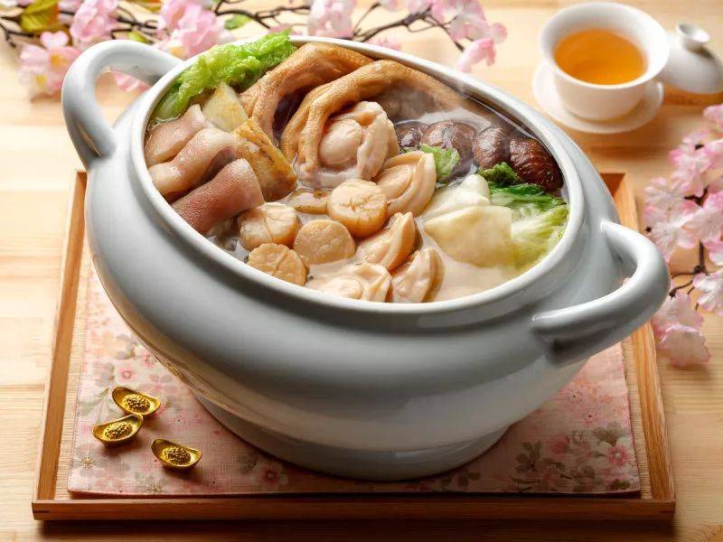 包含了特色的鲍鱼盆菜