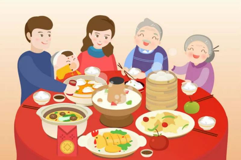 在春节,“吃”往往会成为大部分人节日期间的主要活动。而团圆饭(family reunion dinner),年夜饭也是一年之中最特别的一顿饭,寄寓著团圆的喜悦,新年的祝福。