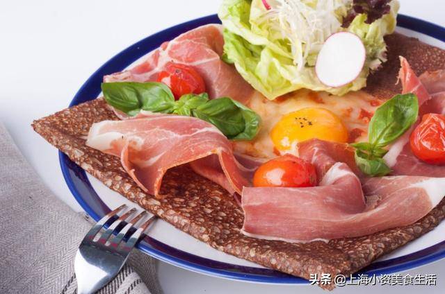 在这里还能吃到荞麦饼这道法国国民美食,每个荞麦饼都是现点现做,中间还躺着一颗嫩滑水润的溏心蛋,再配上高品质马苏里拉奶酪,烤蕃茄、鲜罗勒等新鲜蔬果,既养眼又好吃,荞麦饼的口感充盈中又不失韧性,咸香甘甜,层次感超足!
