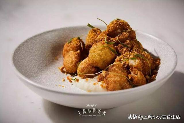 在这位主厨的手中,就连小小的白花菜也变得与众不同,低温预煮后又油炸至金黄色,配菜也依旧以白花菜为主角,加入牛奶煮成泥后,又加入帕玛森干酪,咸香十足。