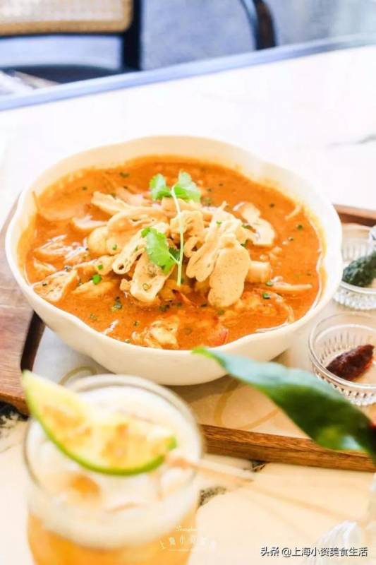 店里的菜道道都是招牌,小资君最爱的就是这道马来西亚蟹虾叻沙 ,入乡随俗的PS.Cafe将它进行了改良,在沙叻里放入了咖喱,让原本鲜爽的汤底间多了分浓醇柔和的口感。连米粉都选用了是一粗一细两款,一次尽享双重口感,满足ing!