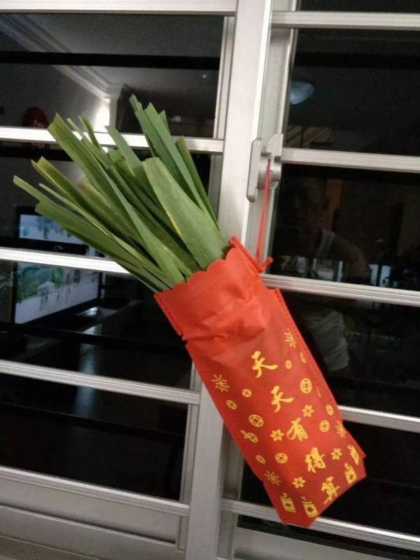 本地的福建人保留了“挂蒜”的民俗,用红纸把两颗蒜包起来,挂在门上。