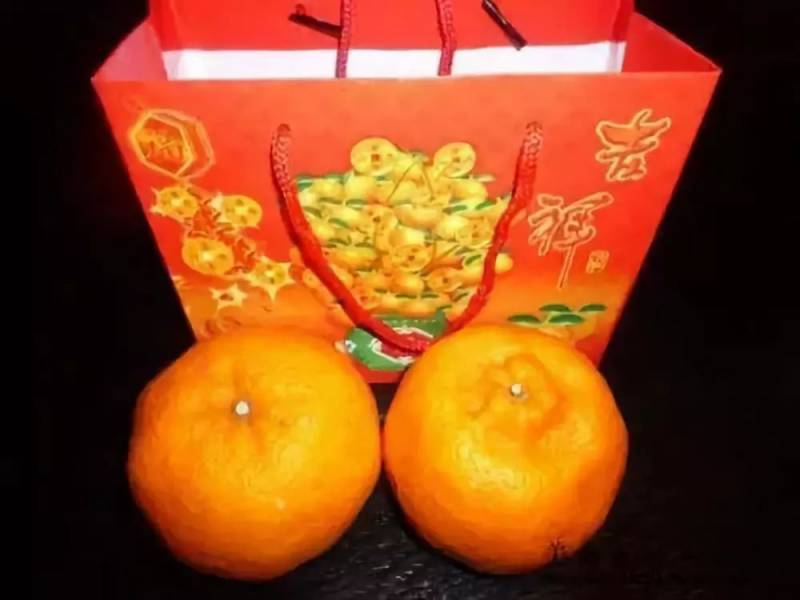 拜年时,把两粒柑橘放在小红袋里,方便携带。