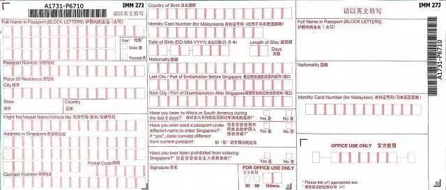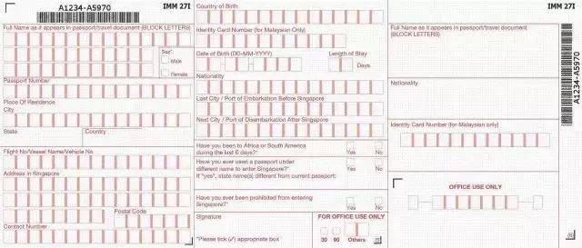 它是新加坡移民与关卡局用来记录、审核出入境人员的重要文件,也是旅客出入新加坡的凭证。