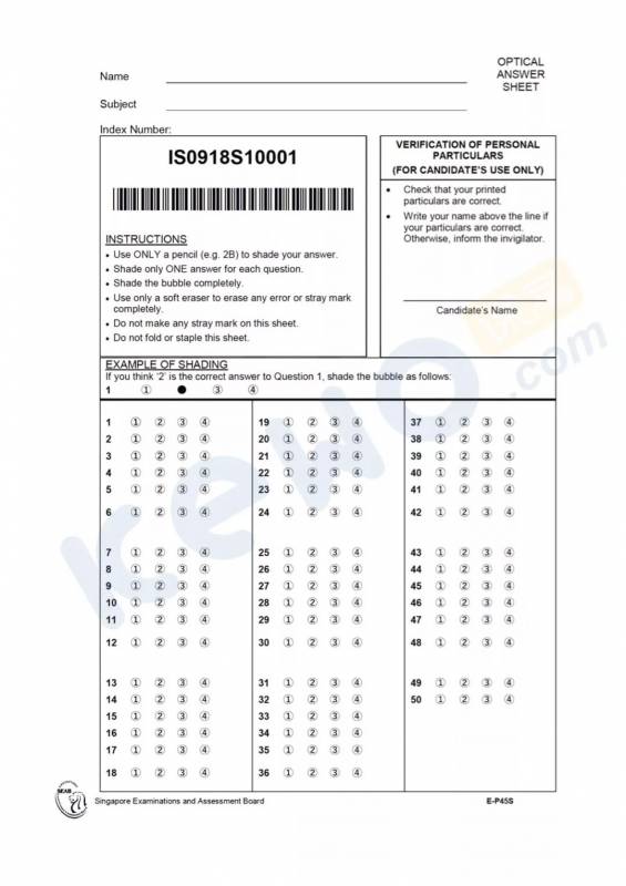 注意:考生必须将各自的电子设备或通讯设备(如手机,等)和个人用品放在考场指定的位置。新加坡考试与评鉴局不为考生丢失或损坏的物品负责。