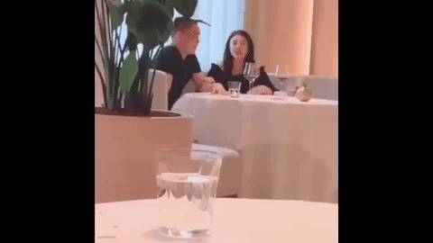 男子摸摸张雨绮的小手,含情脉脉,谈笑风生,空气中冒着粉红色的泡泡。