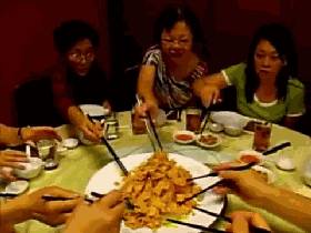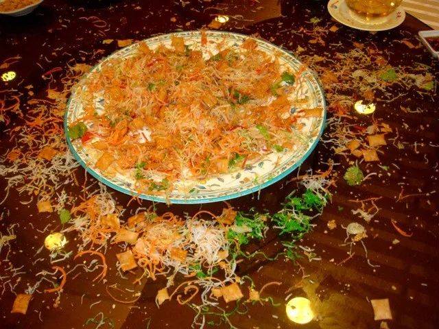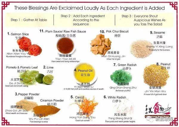 这根本就是一道沙拉嘛!所以有人干脆将这道“鱼生”(yu sheng)或“捞起”(lo hei,粤语发音)翻译成Chinese New Year raw fish salad,洋人一看就明白了!