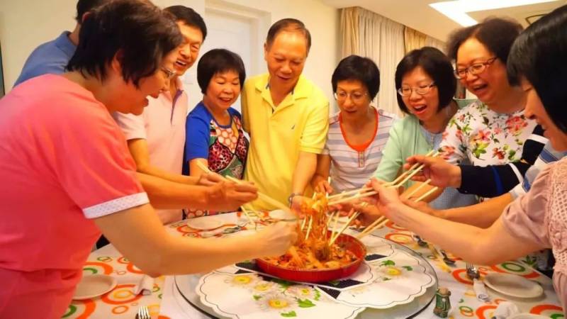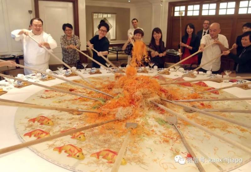 春节期间,外国人在新加坡吃饭时,如果发现周围斯斯文文的绅士淑女们,忽然一哄而上,站起来“抢”吃的,没错,你又遇到了新加坡人在捞鱼生。