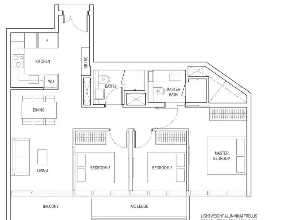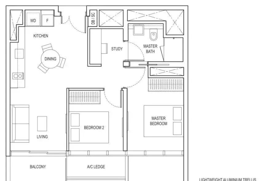 室内面积43平方米/ 463平方尺,价格110万新币起