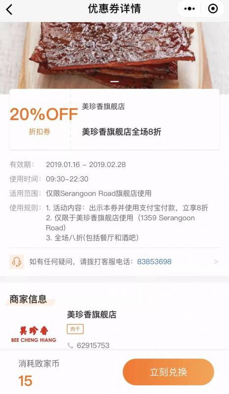 温馨提示,现在在败家星球,只需要用15个败家币,就可以兑换美珍香的8折券哦。这次买伴手礼可以省一笔了!(注意哦,仅限在美珍香实龙岗店使用)