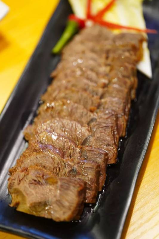 牛肉串是黑椒味儿的,透著一股子成熟稳重的意味,劲道醇和,一口一口吞下的都是草原犇牛沧海桑田的波澜一生