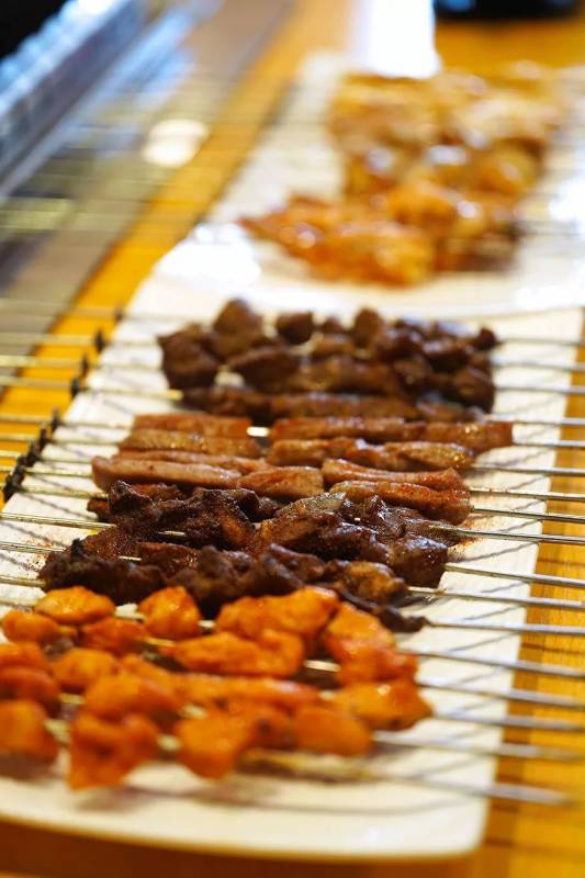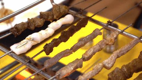 羊肉柔嫩很多,粘连点点白肉,特殊腌制后,膻味儿全无,乖乖排在烤架上,像一个个听话的小羊羔,听牛牛讲那过去的故事