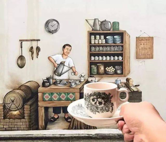 如今,这幅壁画俨然成为咖啡爱好者和游客拍照集邮胜地。