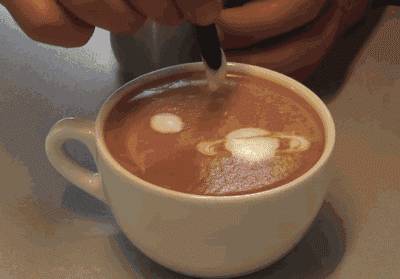 每次在咖啡厅都能听到蒸汽喷发的声音,都觉得很酷。原来是用来打发奶泡的。从学习如何打发奶泡到如何倒入奶泡,形成最后的图案。