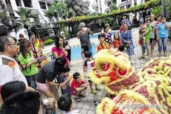 拜年时,把两粒柑橘放在小红袋里,方便携带。这个习俗,本地人不称为“送柑”,而是“换柑”,因为客人临走时,主人也会回赠两粒柑橘,有互赠吉祥的寓意。据说这是源自潮汕地区,新加坡潮州人不少,久而久之也成为各籍贯通行的习俗。看舞狮在中国很多地方只在乡村才能偶尔看到舞狮,但是新马一带过春节,舞狮是大事!到附近传来震耳欲聋的锣鼓声,原来是醒狮队正挨家挨户拜年贺喜!