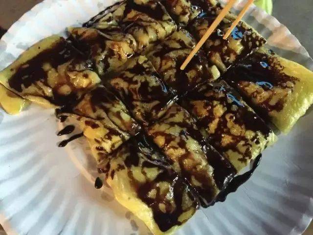 香蕉薄饼35株一份。这个真好吃!内夹新鲜切片的香蕉是固定选项,建议选择加巧克力,巧克力和香蕉的味道,超match!