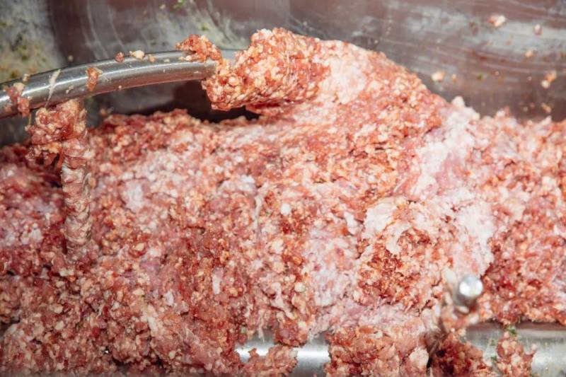 肥瘦适宜的猪肉在搅拌器中搅拌均匀,