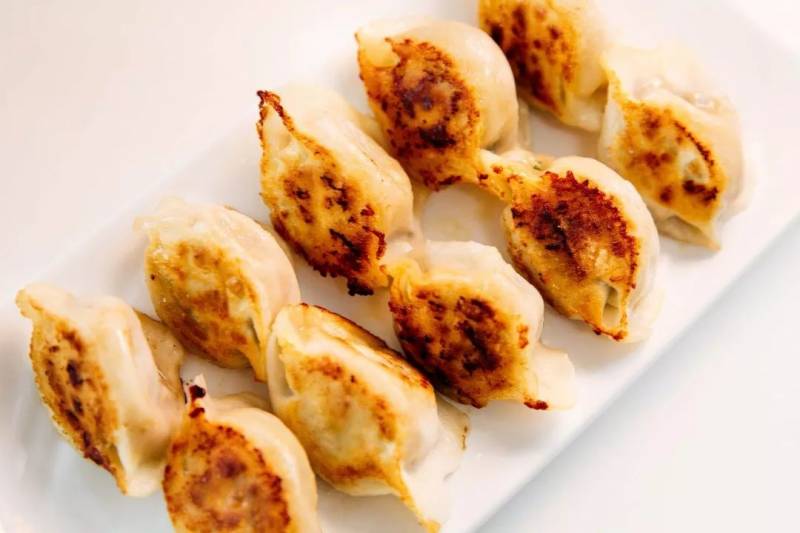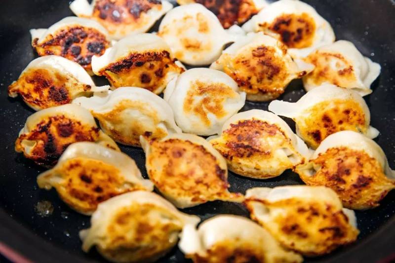 平底锅抹油,饺子无需解冻,平铺码好。中火开始煎,一两分钟后夹起一个观察,若底部焦黄就可倒入纯净水。水没过饺子三分之一加盖,焖五分钟左右。