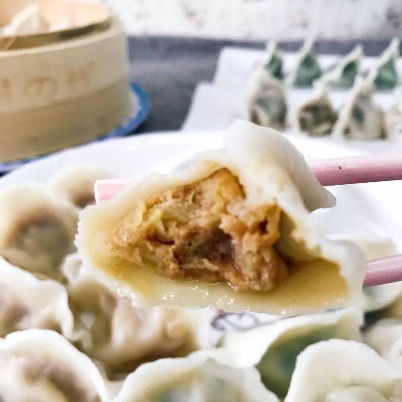 皮有嚼劲,肉鲜美,还带有汤汁,