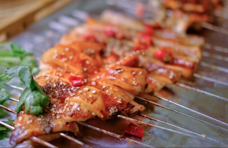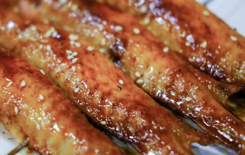 新鲜大鱿鱼刷上一层咸香的酱料