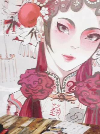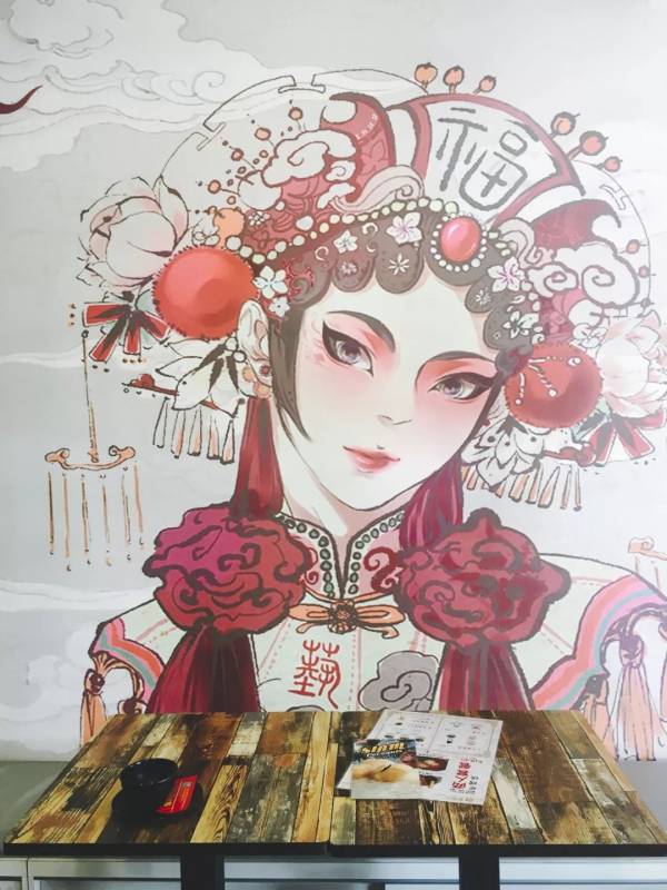 墙面上大幅壁画充满浓浓的中国风