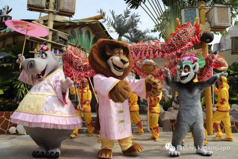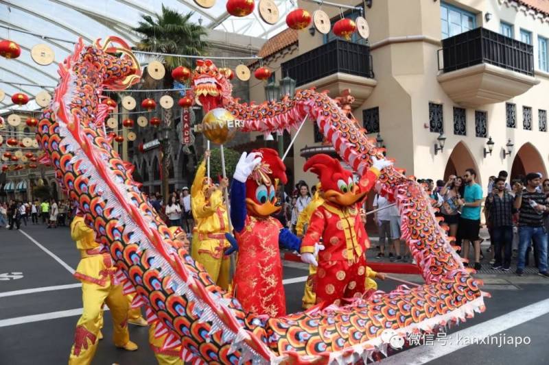 从1月25日开始,到了晚上7点半(指定日期),所有的卡通人物全部装扮一新,穿着传统华人服饰绕新加坡环球影城游行,给大家拜年~
