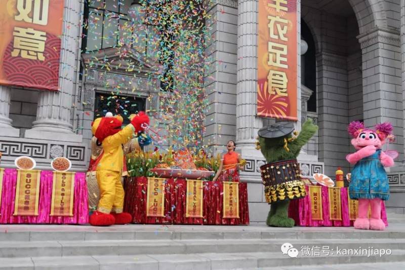 从西方芝麻街远道而来的怪兽小伙伴入乡随俗,捞起了新加坡过年必备的鱼生。