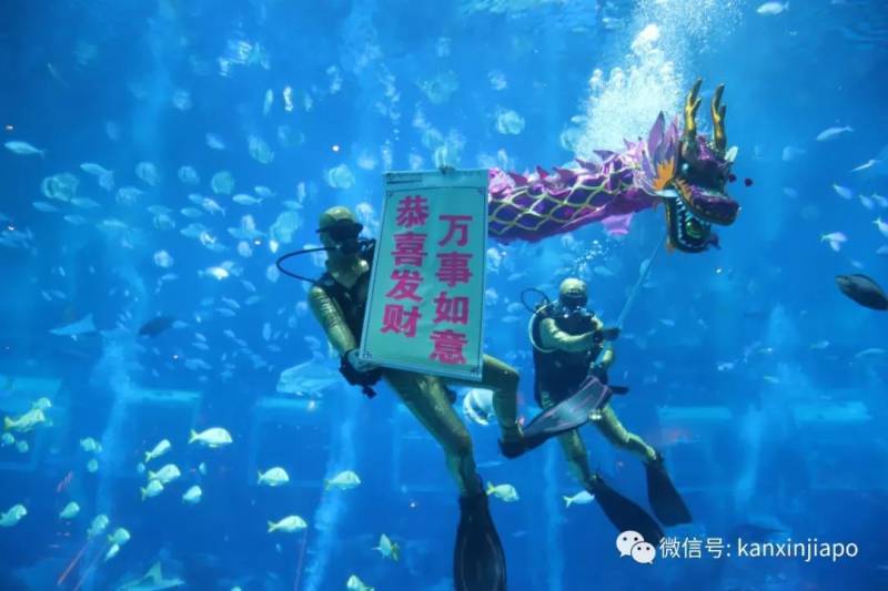 “龙王”潜水员带领着自己的“虾兵蟹将”们随着新春音乐起舞