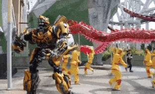 男友力MAX的大黄蜂跟着音乐扭嗨了,旁边的擎天柱先是酷酷地一脸冷漠,然后忍不住也跟着音乐开始动次打次......