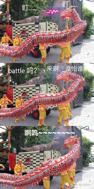最炫酷的是游行到侏罗纪公园的部分,神话中的蛟龙与现实世界中的恐龙相遇,这也是一场中西方的对决!脑补os: