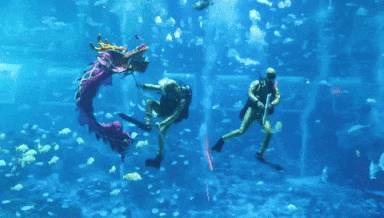 名胜世界的S.E.A海洋馆可是新加坡唯一能看到水中舞龙表演的地方。在打破吉尼斯纪录的巨大水族观景窗前,看威武霸气的水龙从天而降,在4万只海洋生物的陪伴下自在潜游~