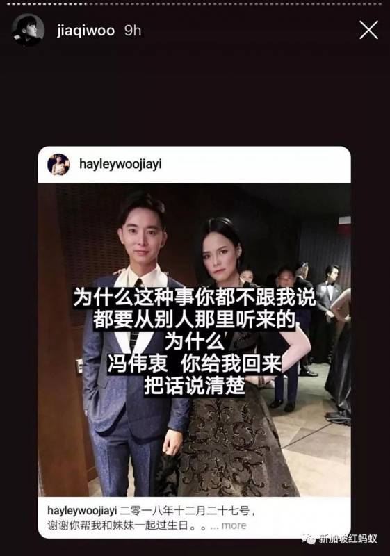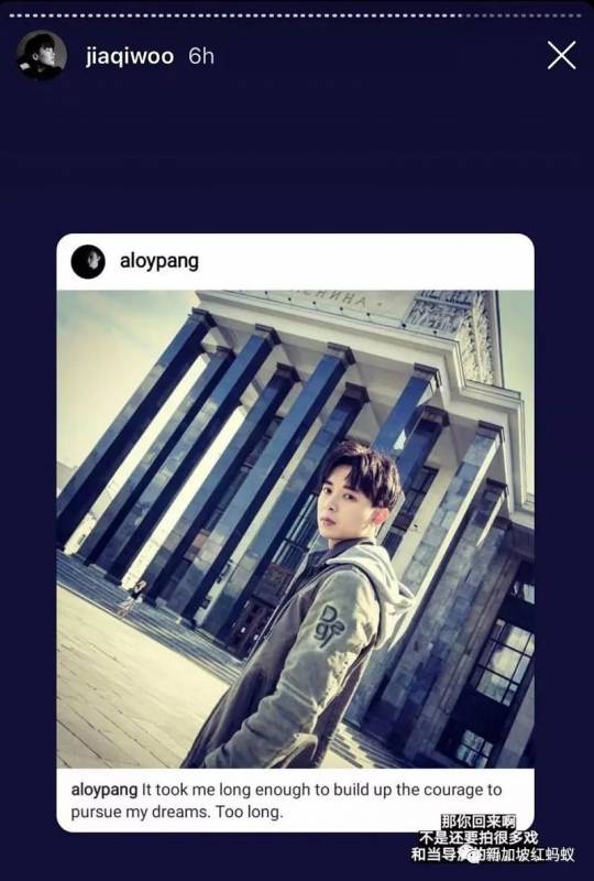 冯伟衷在IG上曾PO文说,我花了很长的时间才鼓起勇气去追梦。胡佳琪昨晚回复他说:“那你回来啊,不是还要拍很多戏和当导演的吗......