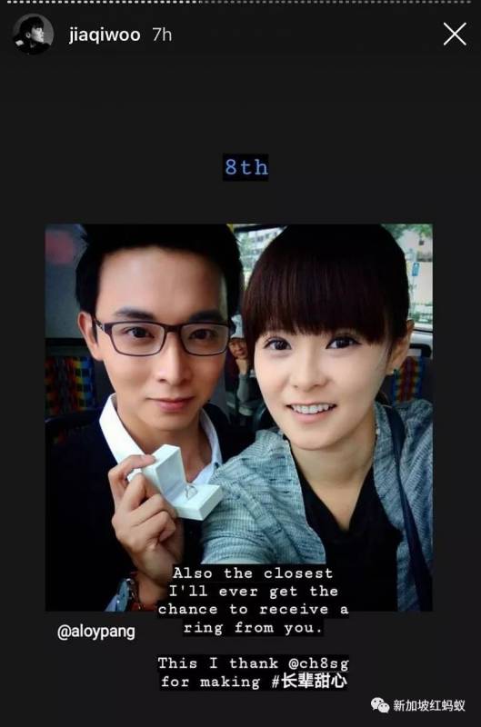 胡佳琪说这可能是我最有机会收到你的戒指的一次。原来这是两人拍摄《长辈甜心》时,两人是情侣关系,戏中的冯伟衷向胡佳琪求婚。