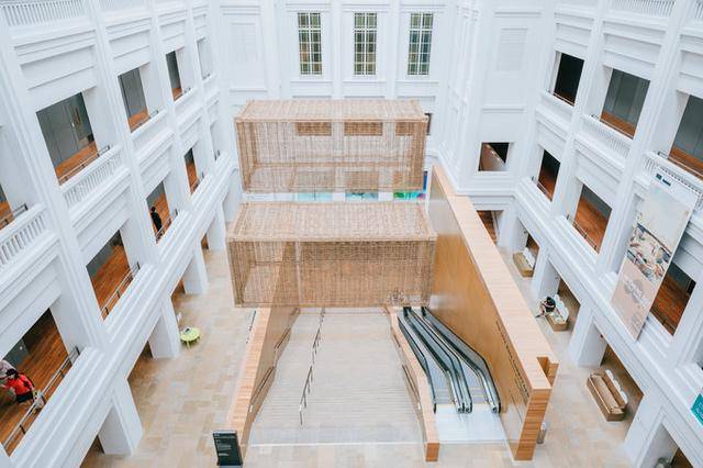 新加坡国家美术馆是新加坡和东南亚最大的收集现代艺术公共收藏的视觉艺术机构,由前最高法院和市政厅两栋建筑合并而成。这里陈列著很多艺术品,分不同的展区展示。我们来这里主要是为了拍照。临时决定来这里,就在网上购票,然后到了美术馆以后,下到B1去售票处兑换纸质票。新加坡本地人进来参观是免费的,外国人购买常设展厅普通票是20新加坡元,如果有特殊展则需要额外购票。网上购票会有优惠,而且可以随去随买,也比较方便。