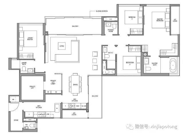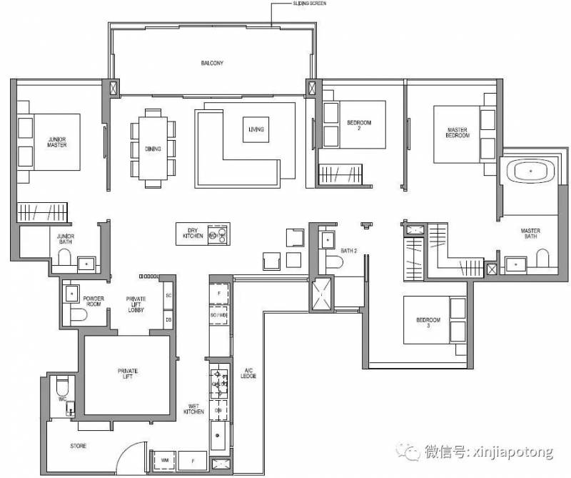 4卧室豪华型D1, 161平方米/1733平方英尺,自带私人电梯直接入户,舒适的主卧卫生间带浴缸,厨房为干,湿两部分,3个房间在右侧,另外一个小主人房在房子的左侧(自带浴室),如果碰上有亲戚朋友过来玩,可以灵活安排小主人房当客房用哦.价格为462.4万新币起