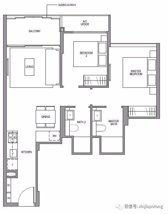 2卧室,73平方米,开放式厨房,每个房间可以放双人床,价格$199.3万起,多5%优惠价格189.3万起 (2房特别促销活动中)