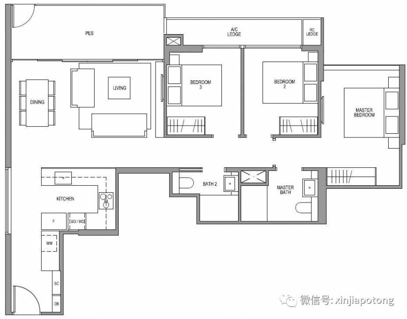 3卧室标准型,101平方米/1087平方英尺,户型方正,方便家私摆设,每个房间够大,可以放置双人床,设计做到房子得到充分利用,没浪费面积!价格317.3万起