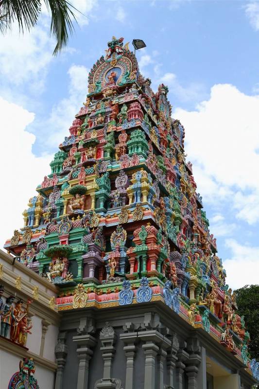 他们所建设的丹达乌他帕尼庙,拥有全东南亚最高,也是新加坡最宏伟的印度庙宇塔门,高约23米。庙宇屋顶镶嵌了48片玻璃,玻璃片的角度能让阳光从各个方向照射进来。