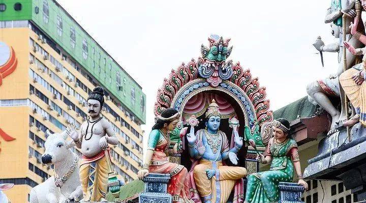 实里尼维沙伯鲁玛庙矗立在有“小印度”之称的实龙岗路一带,大门处的塔门上有许多毗湿奴神(Vishnu)不同化身的雕像。这座庙宇是每年印度教徒大宝森节游行的起点。